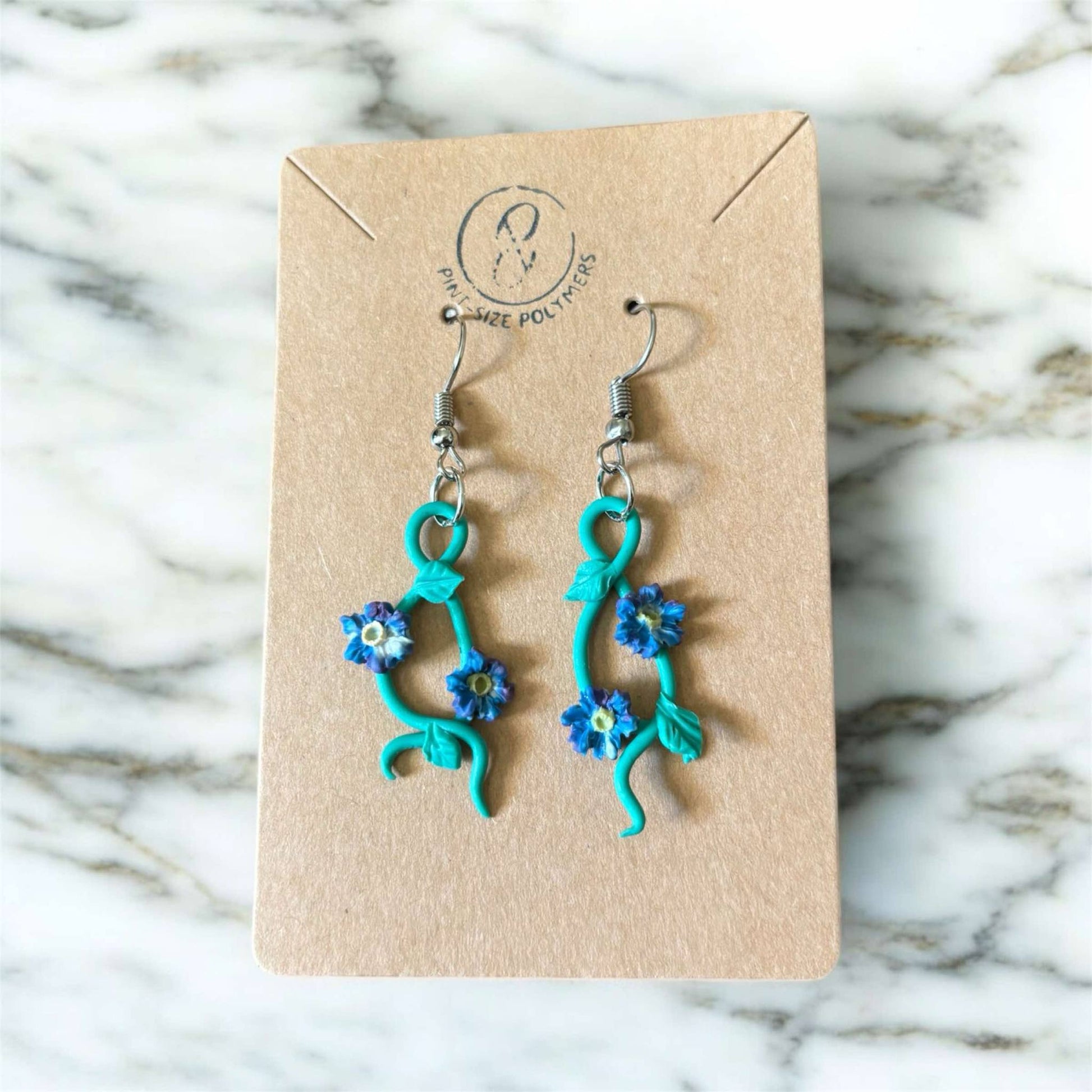 Sculpted clay asters rest gracefully along slender, twisting vines, creating a delicate cascade from a refined post. Their organic form captures the quiet elegance of nature, evoking a sense of movement and timeless beauty. Thoughtfully handcrafted, these earrings symbolize resilience, transformation, and the fleeting charm of blooming flowers.