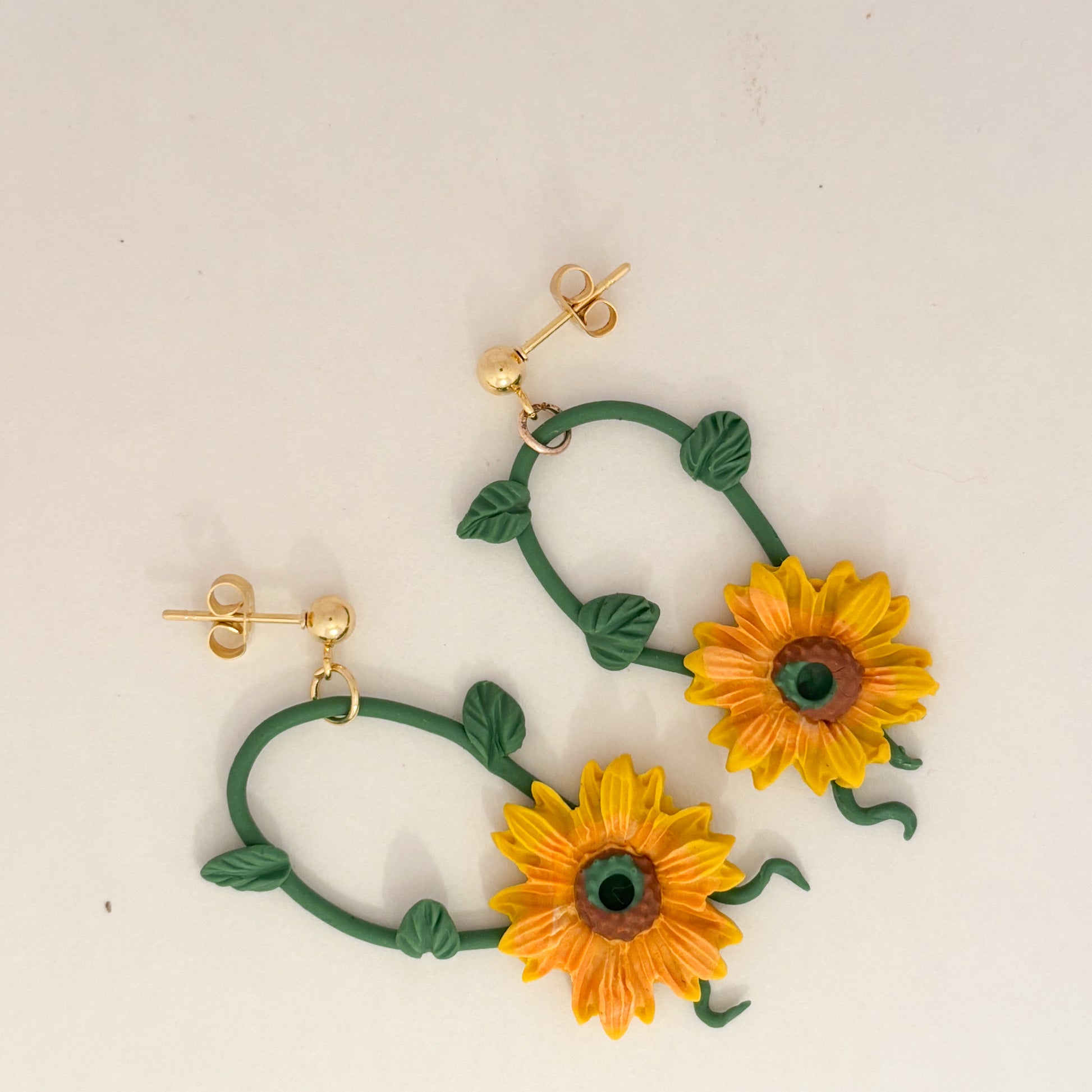 A single sunflower twists along a vine, inspired by California’s wild grape vines. Its golden petals capture the warmth of early summer in a refined, handcrafted design 🌻